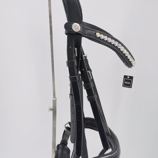 AURORA BOREALIS Crystal Bridle - BLACK LEATHER